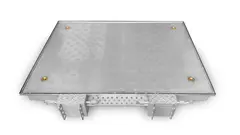 Elk mangat bestaat uit een montageframe met een hoogte van 240 mm en een deksel van geribbelde roestvrijstalen plaat, scharnierend langs de lange zijde. Het mangat is bestand tegen gassen en spatwater, wat het ideaal maakt voor gebruik in vochtige omstandigheden en bij hoge eisen aan waterdichtheid.